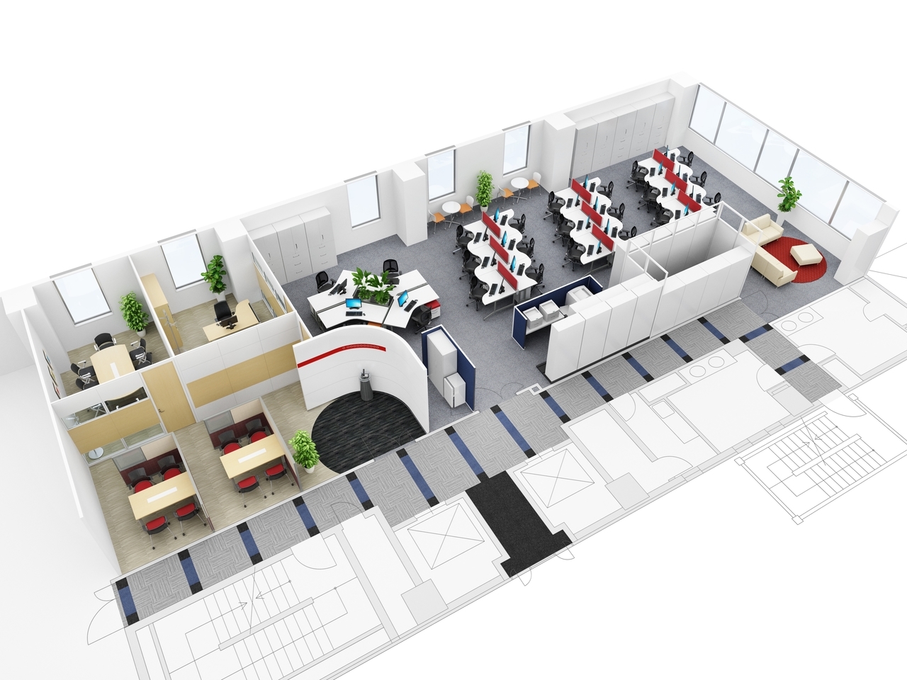お客様のご要望(オフィス創りのご要望、スケジュール、予算)にあわせて、オフィス家具・内装・インテリアなどのレイアウトプランをさまざまなレベル・方法でご提案します。